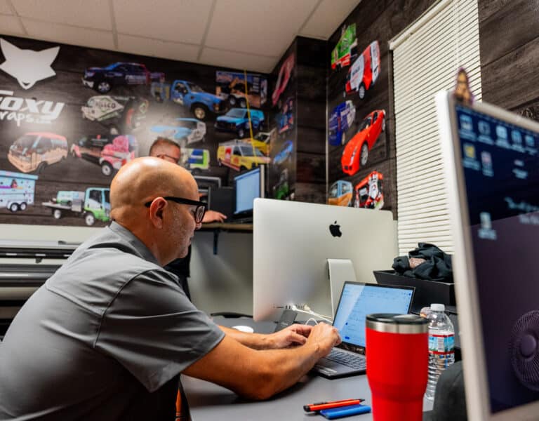 - According to the installation schedule, we then print the design on high-quality wrap material, allow it to dry, cut it, laminate it, and prepare it for installation.